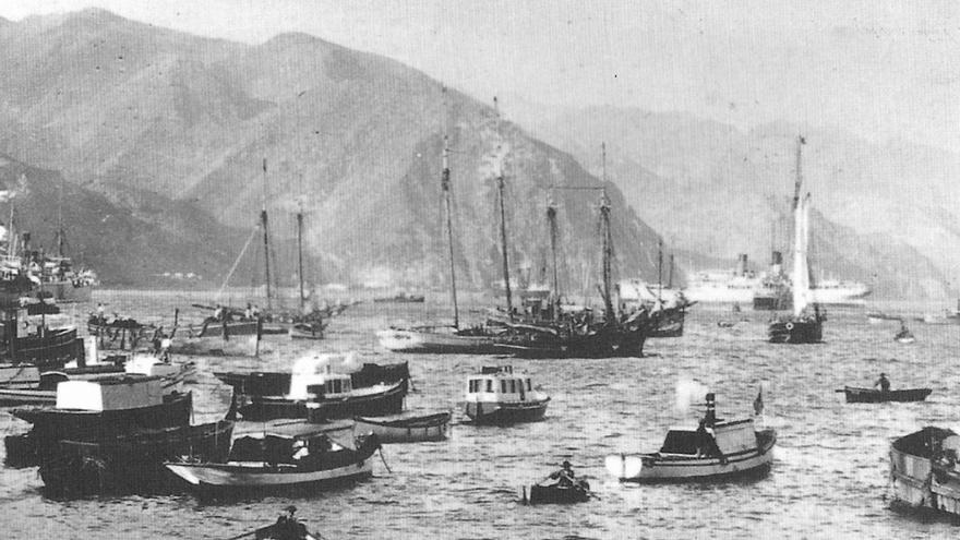 En el muelle de Santa Cruz se encontraban barcos de banderas belgas que iban a las desembocaduras del Congo; proas inglesas que venían del Cabo o torcían el rumbo hacia las Antillas y el golfo de México; buques de todas las nacionalidades que marchaban en línea recta hacia el sur, en busca de las costas del Brasil y las repúblicas del Plata; cascos de cinco palos descansando en espera de órdenes, de vuelta de la China, el Indostán o Australia; vapores de pabellón tricolor en ruta hacia los puertos africanos de la Francia colonial; goletas españolas dedicadas al cabotaje del archipiélago canario y las escalas de Marruecos…